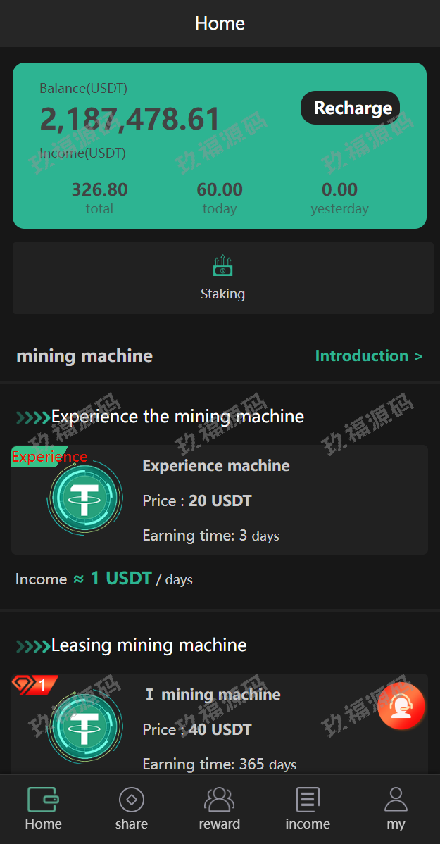 新版多语言矿机系统/usdt矿机/usdt质押生息/拉新任务