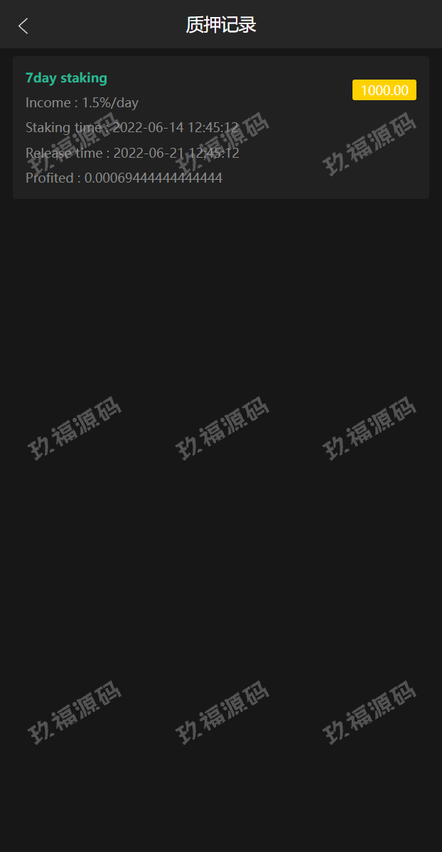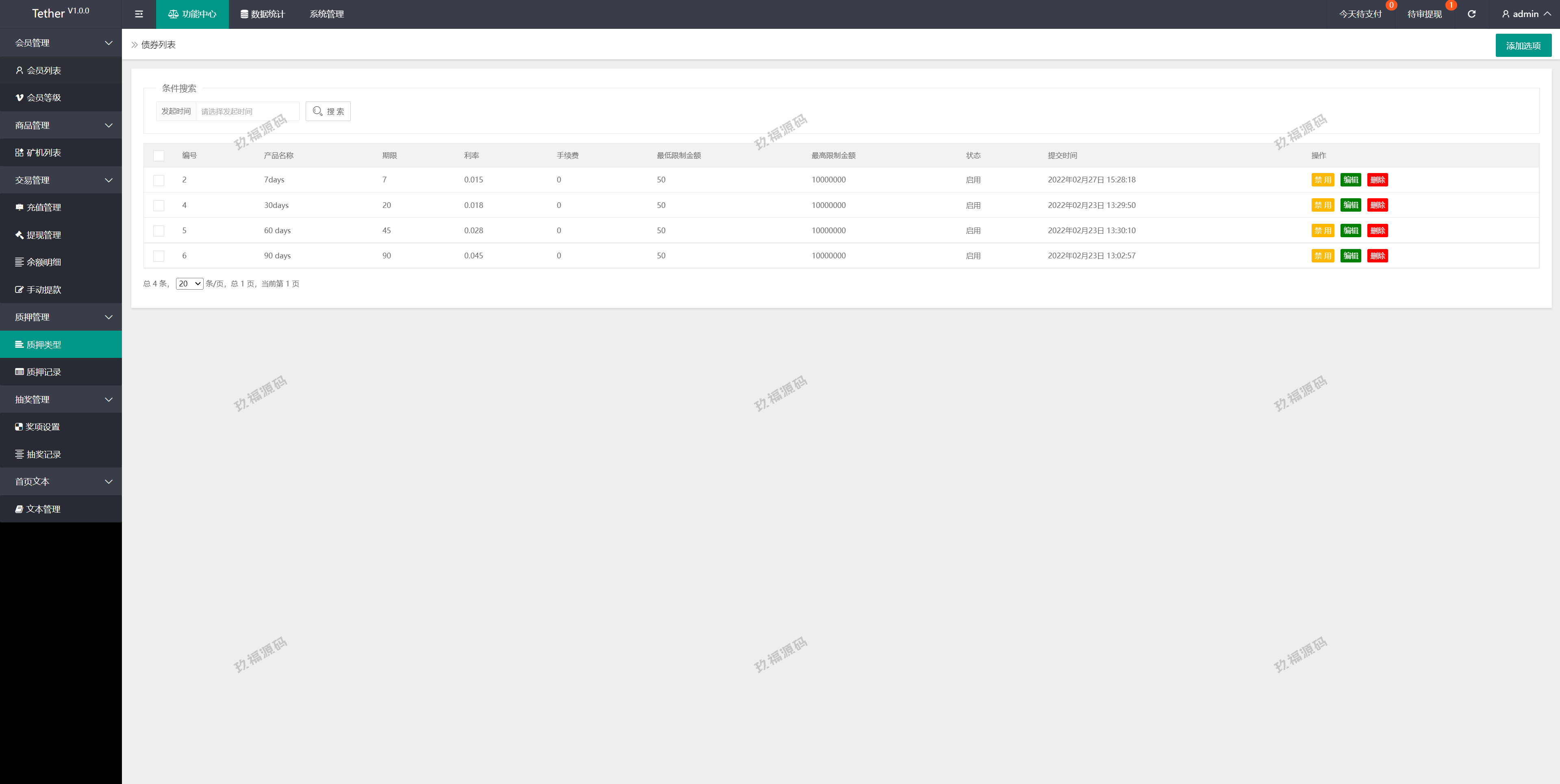 还附带usdt质押生息功能,后台可设置时间跟奖励
