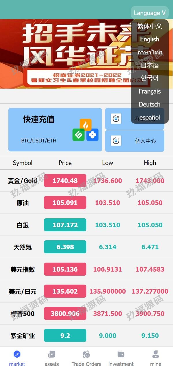 全新优化版八国语言微盘系统/外汇微交易系统/投资理财源码