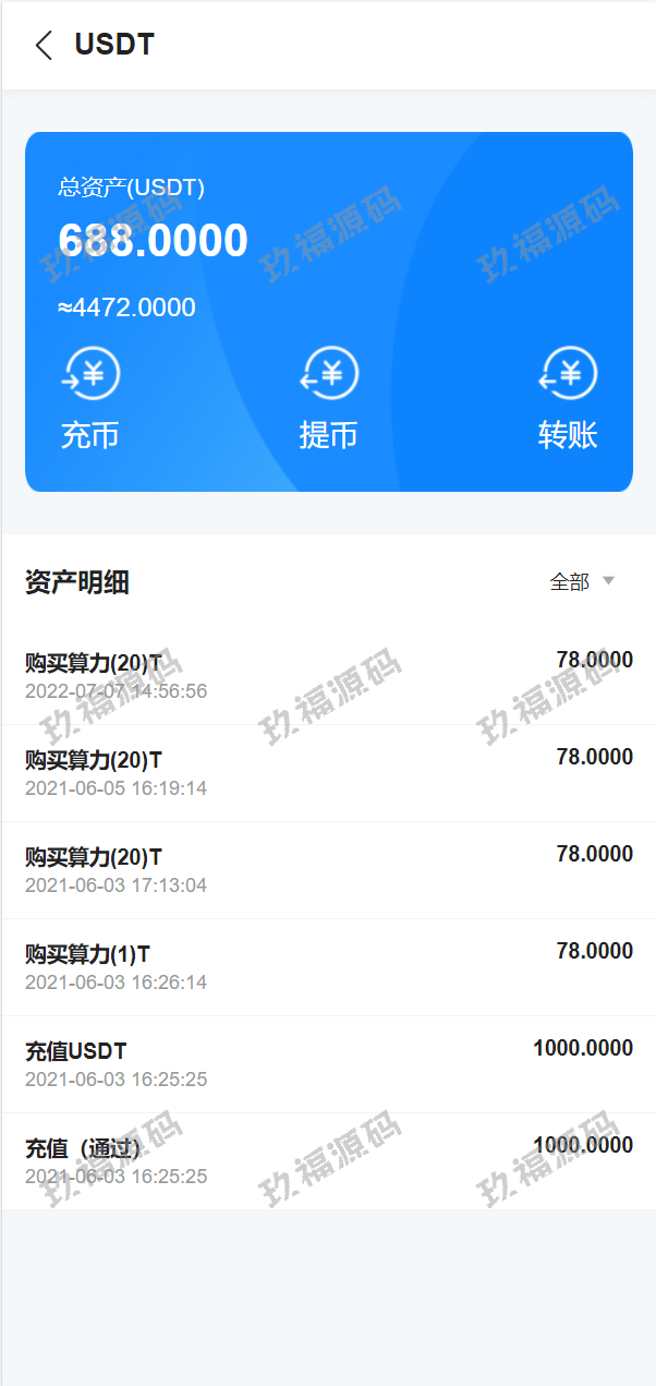 usdt矿机系统/云算力矿机/区块链矿机/usdt充值