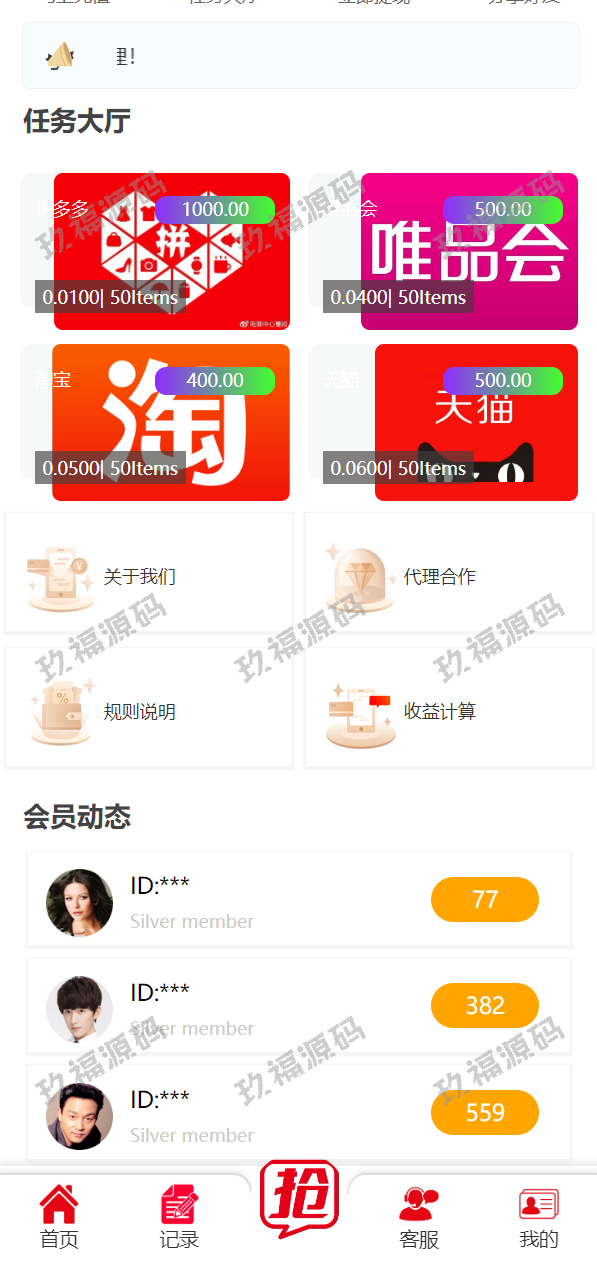 精美UI抢单系统/抢单刷单源码/订单自动匹配系统