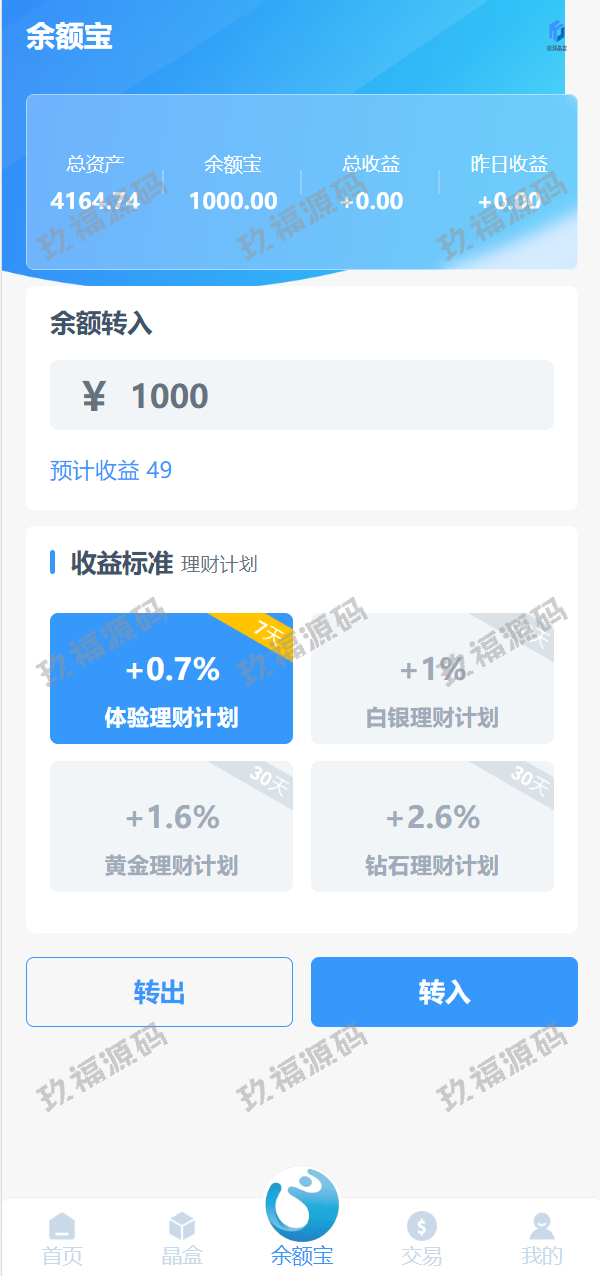 全新ui矿机系统/区块链云算力矿机/余额宝理财/虚拟币交易市场
