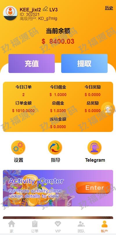 多语言玖福抢单刷单系统/大转盘抽奖余利宝/代理后台/订单自动匹配