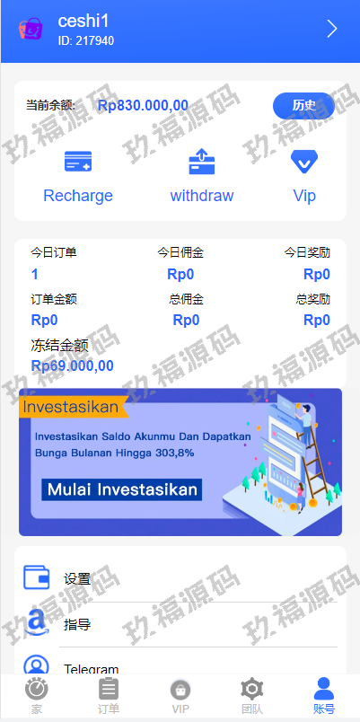 此套系统是别人全新二开UI的抢单系统,二开了单独的代理后台,具体看图