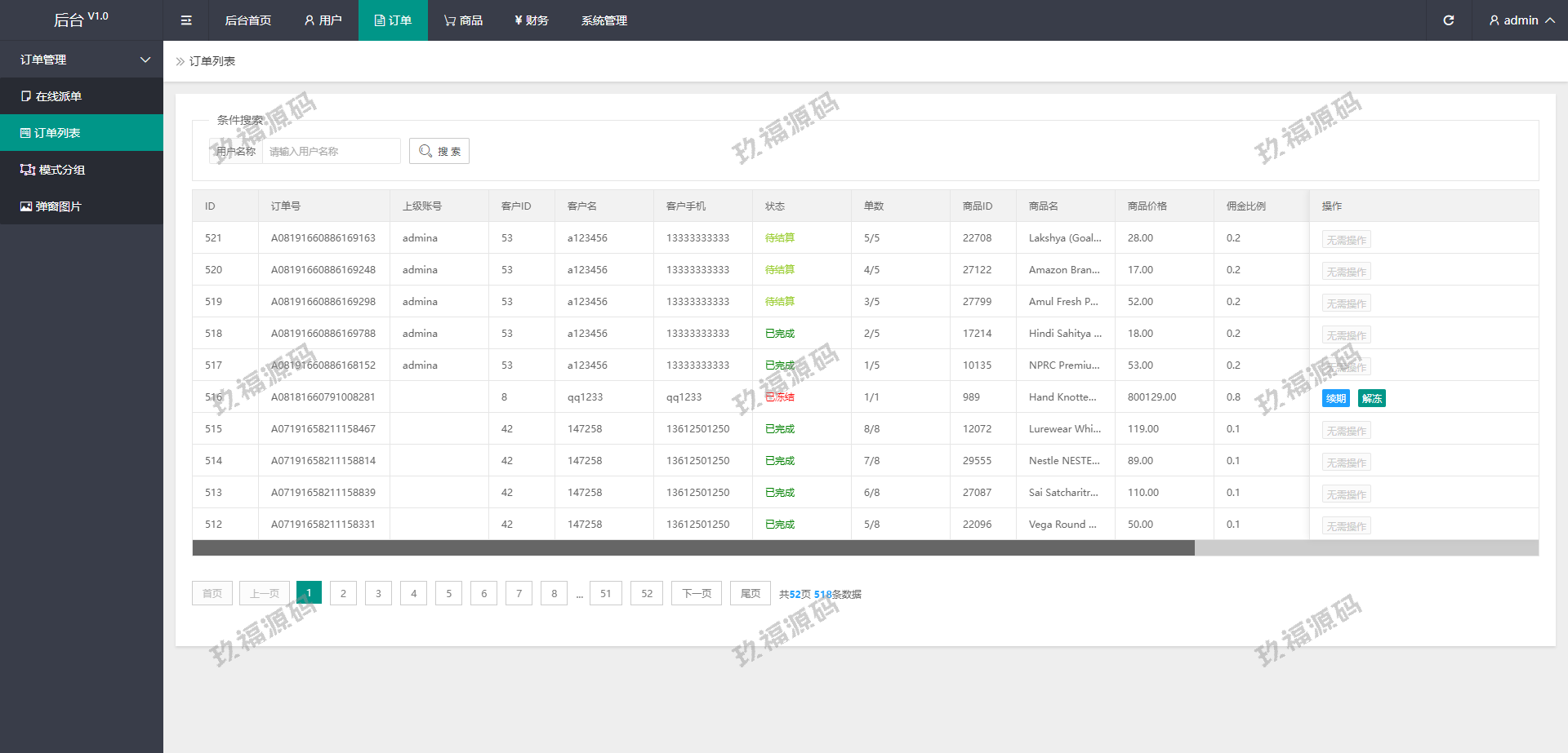多语言订单自动匹配系统/玖福抢单刷单系统/分组杀/代理后台