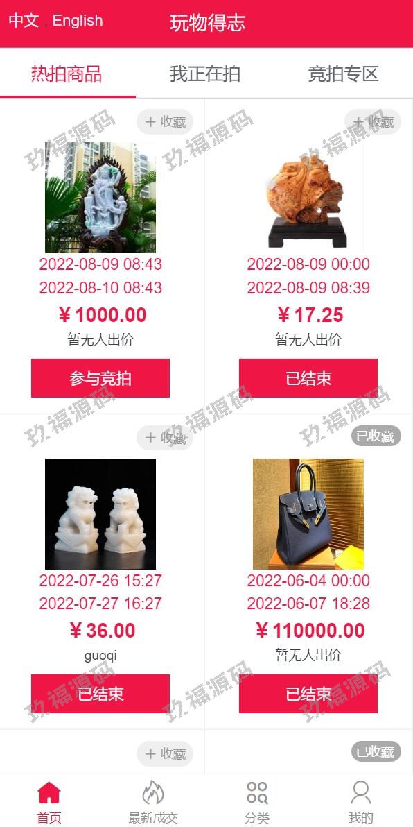双语言版竞拍系统/竞拍转拍源码/竞拍商城/商场寄售系统