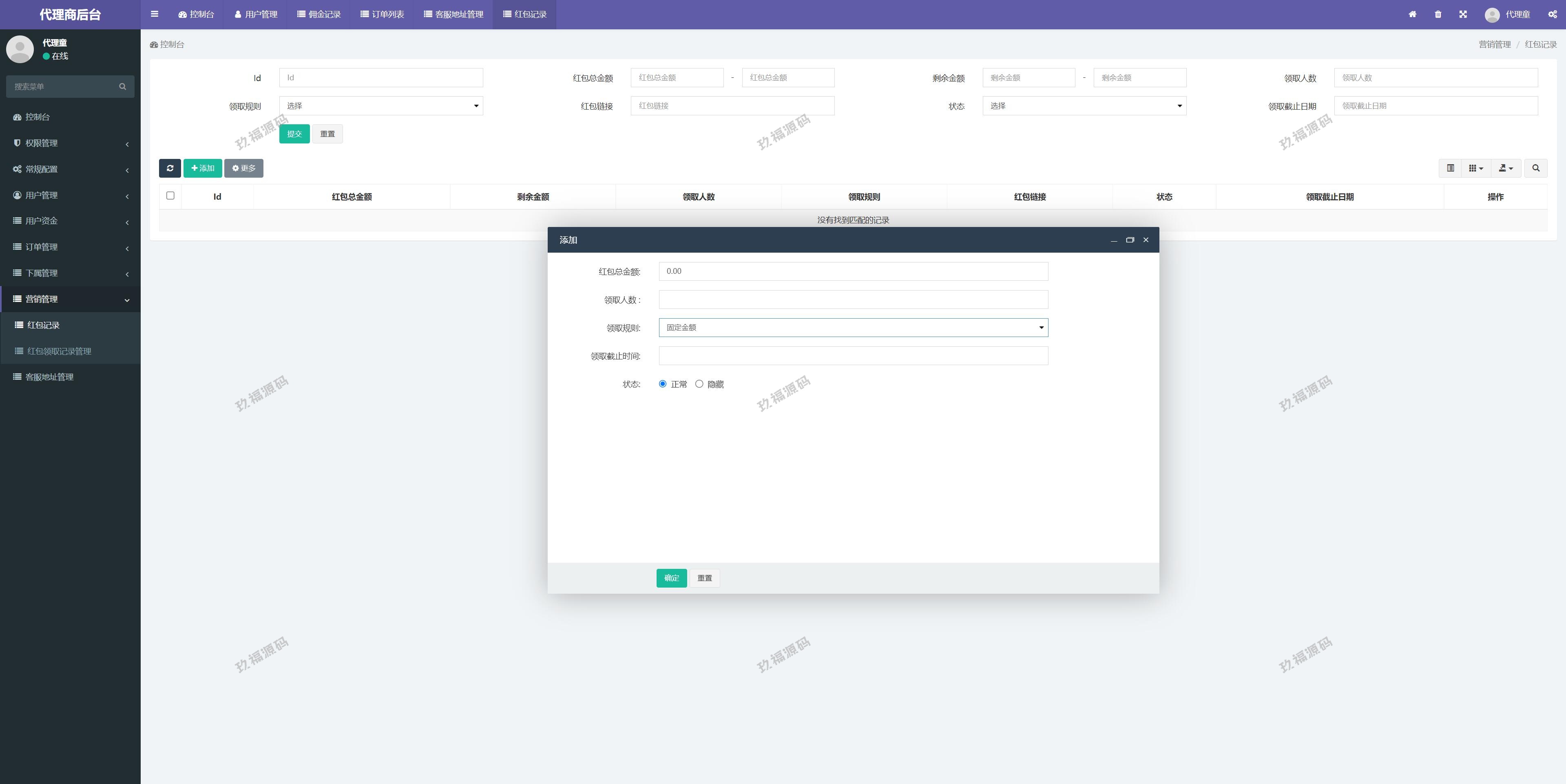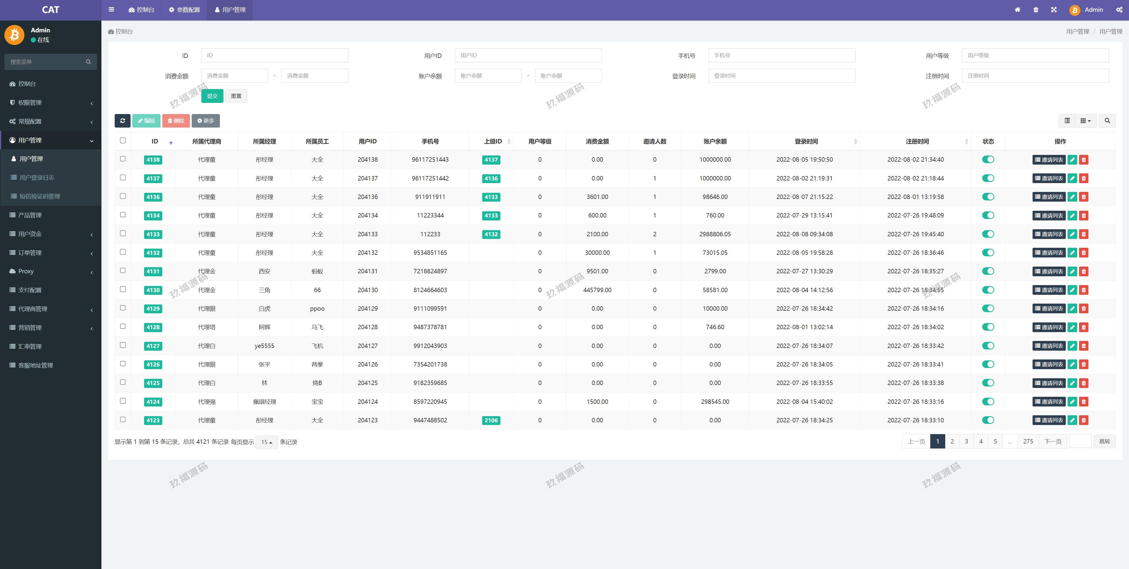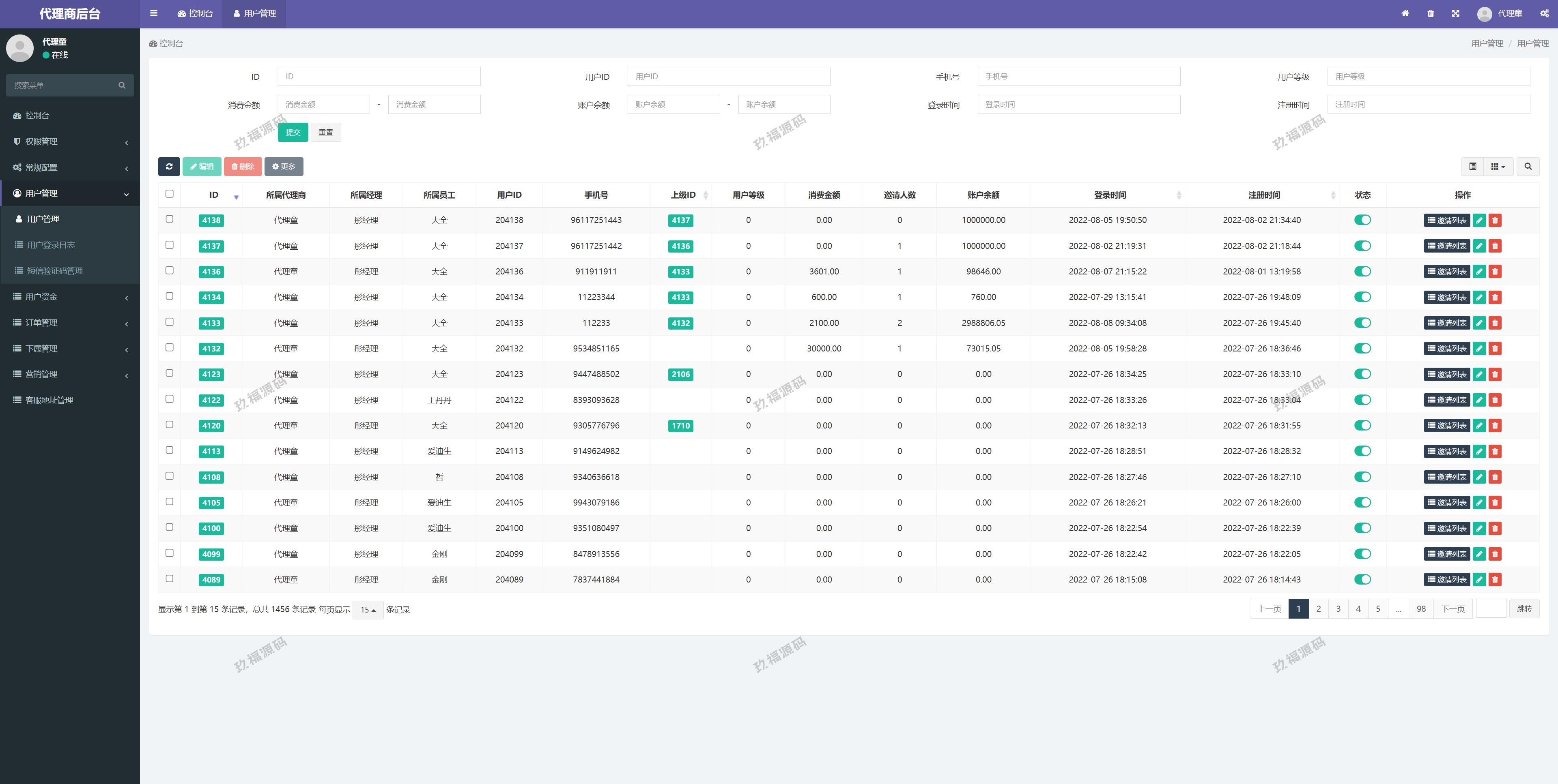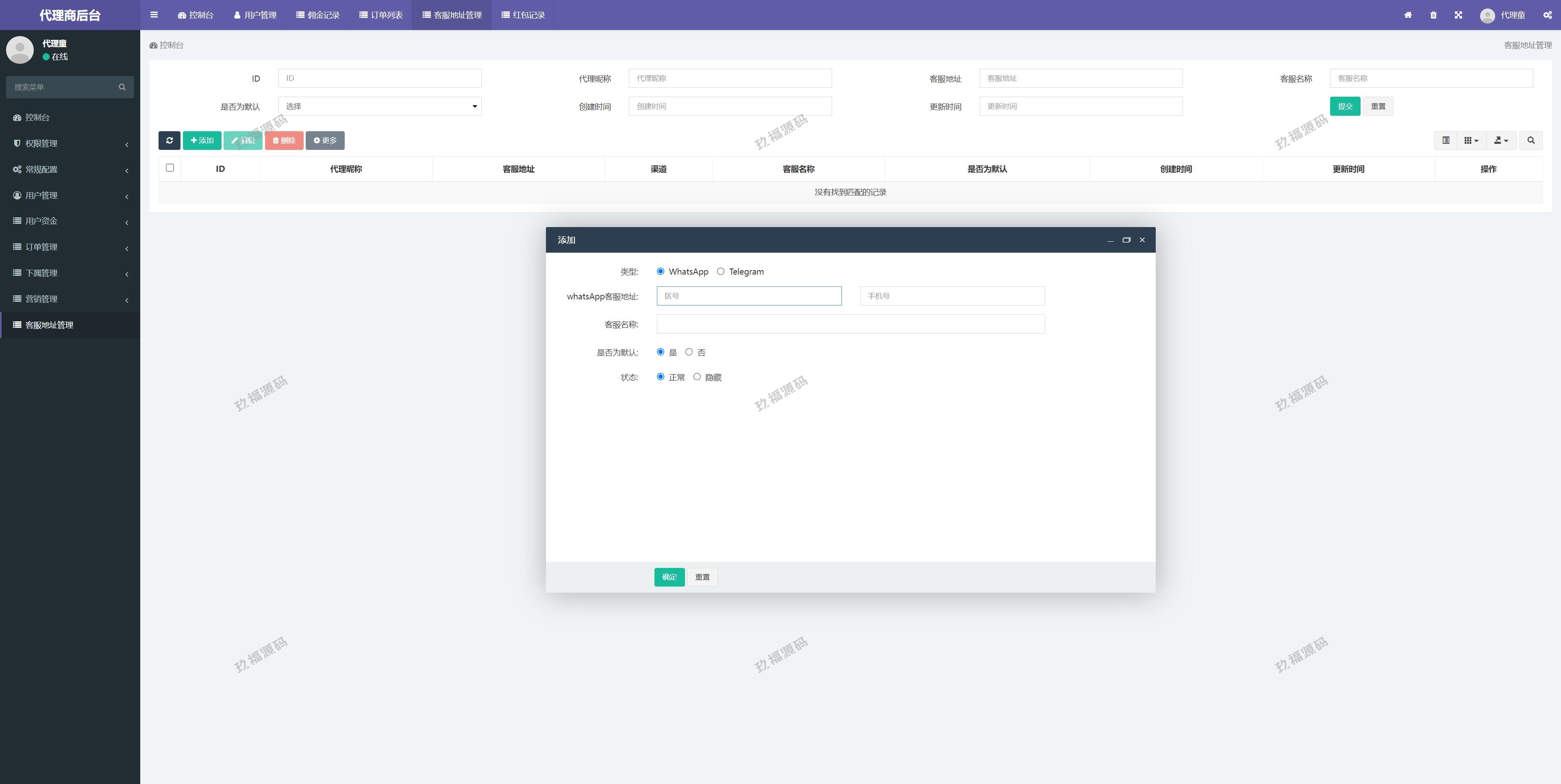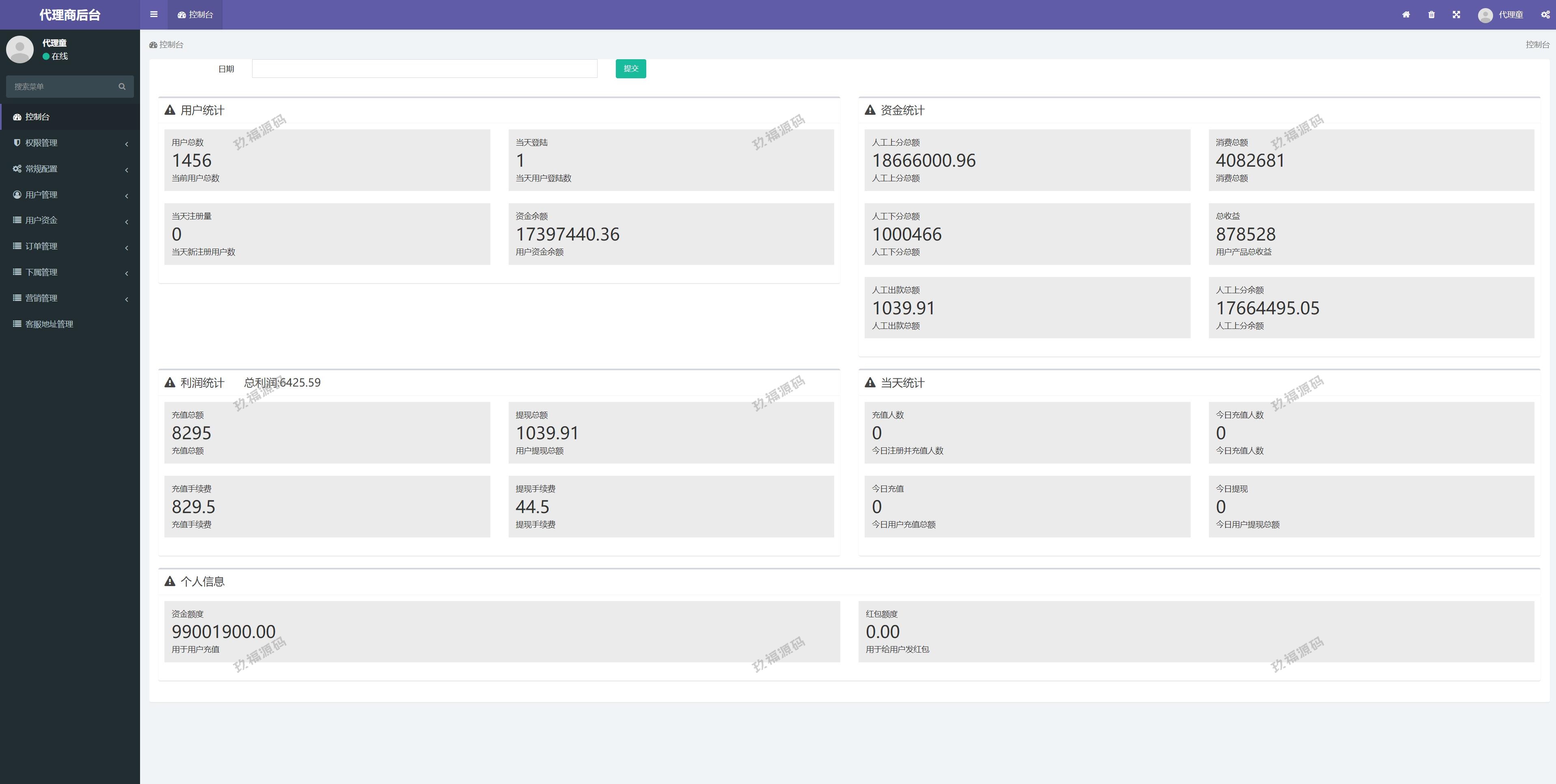 此系统使用FastAdmin框架全新开发,单独的代理后台