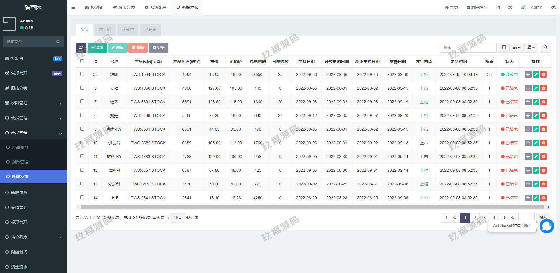 系统功能满足正常运营需求,带申购、折扣交易等功能