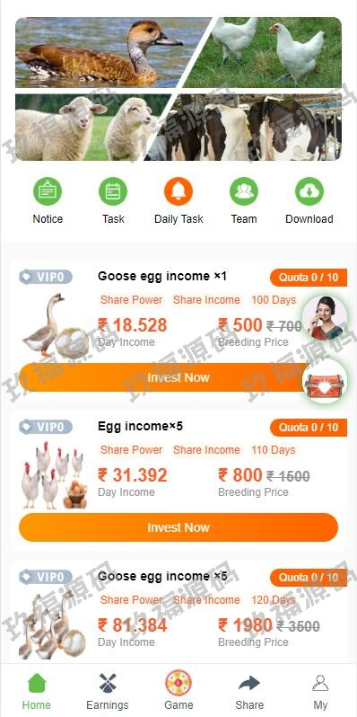 另UI玖福版理财系统/养鸡养鸭投资系统/投资理财源码/任务图推广注册奖励