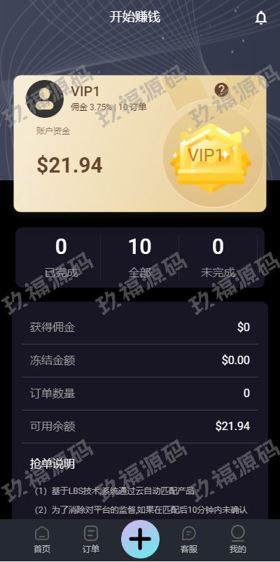 1.会员自动匹配订单,获得佣金收入。