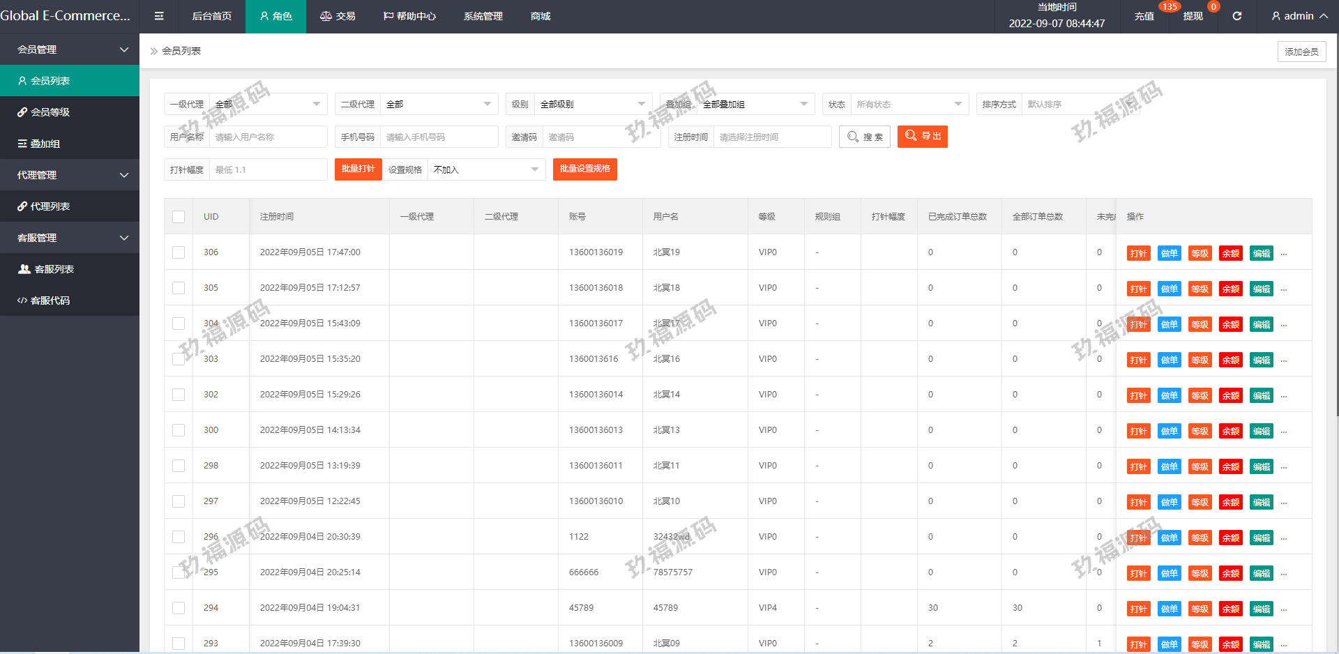 5.三级分销,带客服,等级优先,充值提现优先完美后台查询功能