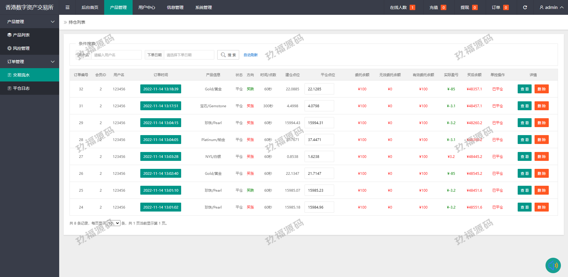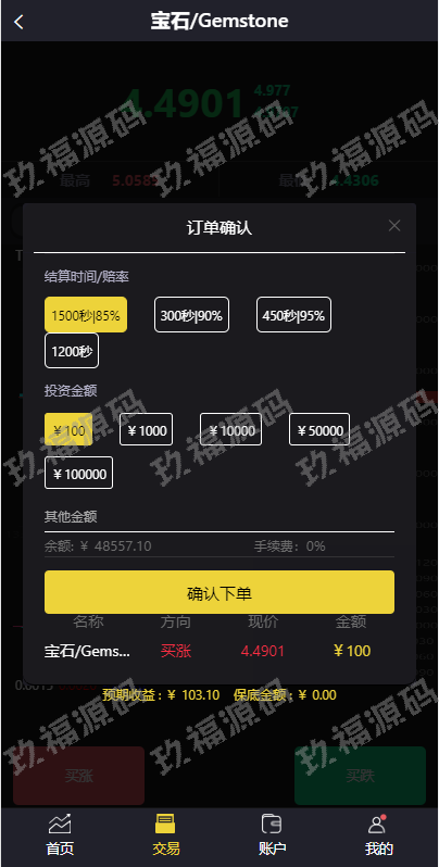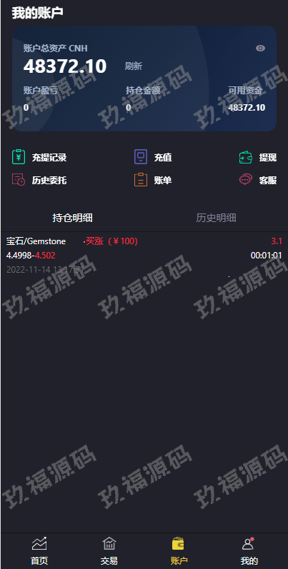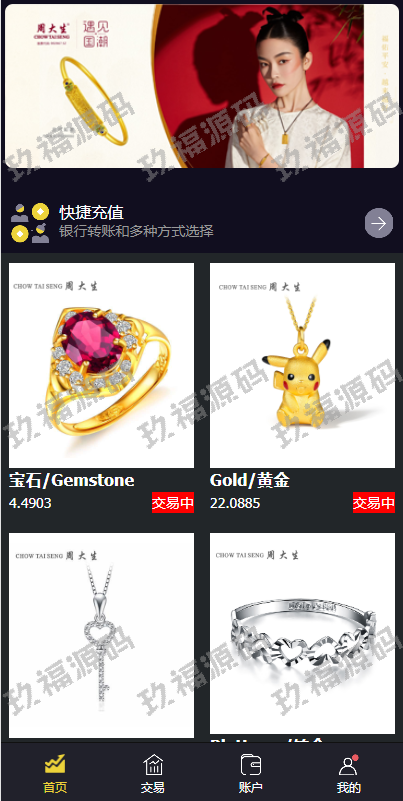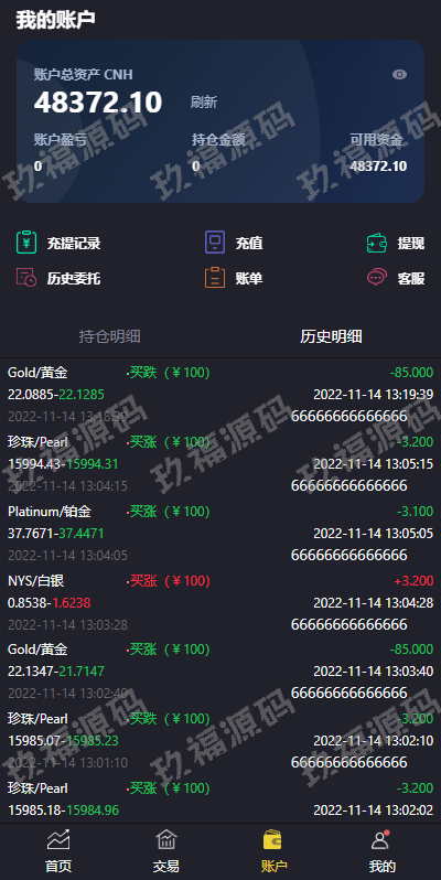 一套二开前端UI得贵金属微交易系统,前端产品后台可任意更换
